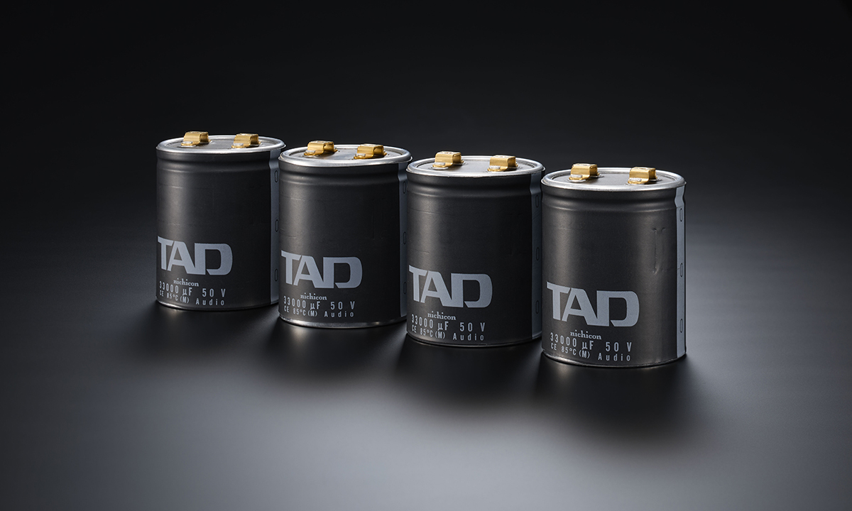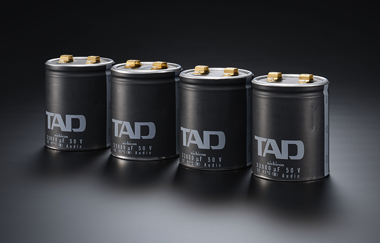 TADオリジナルのラダー抵抗切替型電子ボリュームにより、超高精度なATT特性と低歪率(0.0005%以下/1Vrms入力時) を実現。オーディオ回路のコンデンサおよび抵抗部品には、磁気の悪影響を排除するため、非磁性部品を採用しています。音質上重要なアナログオーディオ信号用抵抗器と低歪の高品位フィルムコンデンサには、Ni下地メッキのない特殊構造の金メッキOFCリードを使用し、電流ループを小さくする高品位非磁性電極チップ抵抗も導入するなど、磁性歪を徹底的に排除しています。パワーステージの電源平滑コンデンサには、33,000μF×4基の大容量タイプを搭載し、繰り返し試聴と吟味を重ねて開発した、TADオリジナルのカスタムメイド電解コンデンサを採用しています。