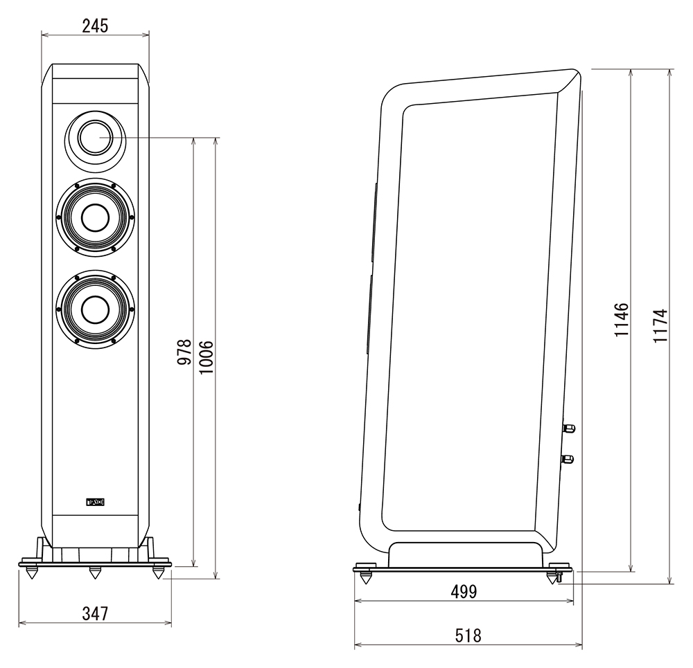 パフォーマンスデータ | 再生周波数帯域: 29 Hz ~ 60 kHz クロスオーバー周波数: 420 Hz、2.5 kHz 最大入力: 200 W 出力音圧レベル: 88 dB (2.83 V・1 m) 定格インピーダンス: 4 Ω |