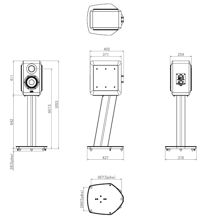 | パフォーマンスデータ | 再生周波数帯域: 36 Hz ~ 60 kHz クロスオーバー周波数: 420 Hz、2.5 kHz 最大入力: 150 W 出力音圧レベル: 85 dB (2.83 V・1 m) 定格インピーダンス: 4 Ω |